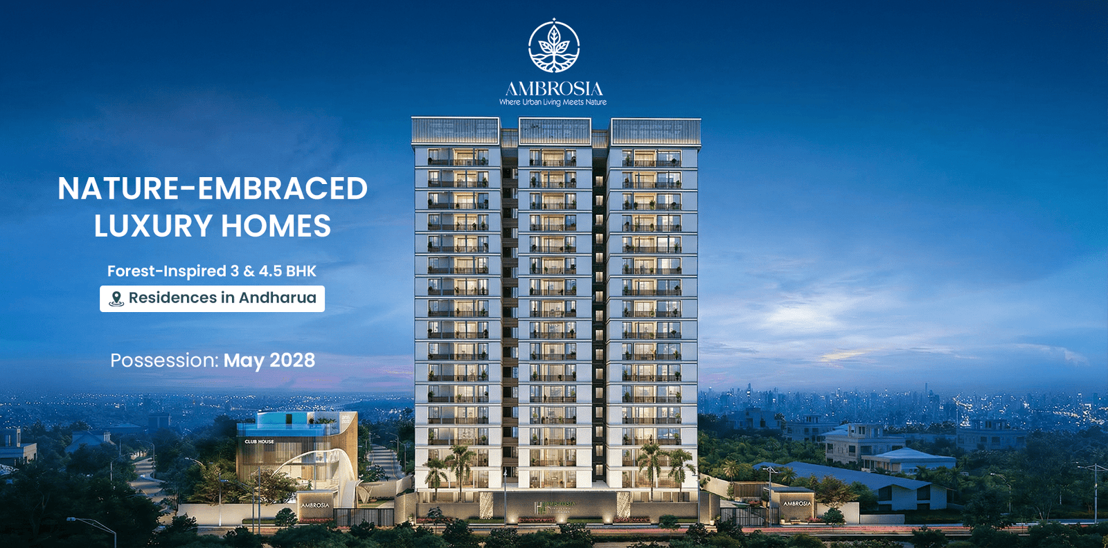Ambrosia offers a rare opportunity to own a forest-facing luxury home at a price that reflects value, not excess. Located beside the Chandaka green belt, these spacious Vastu-compliant 3 and 4.5 BHK residences feature three-side open planning, expansive balconies, and over 66% open area.